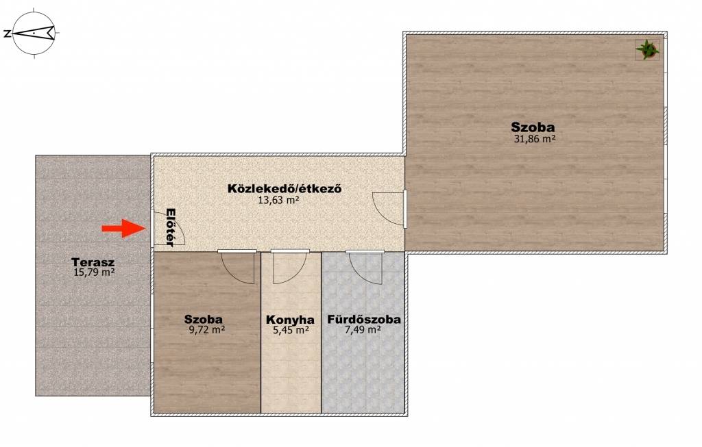 - a lakásban jelenleg 2 szoba, konyha, fürdőszoba, folyosó és terasz található