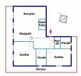 A lakóhelyiségekben magas minőségben választható burkolatok: svédpadló parketta, vizes helyiségekben ragasztott kerámia.