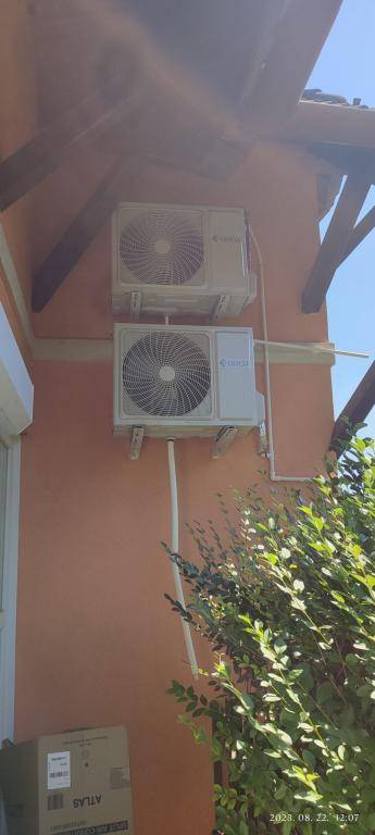 Többféle fűtési lehetőség: gázkazán, fatüzelés, padlófűtés, klíma, napelemes elektromos áram