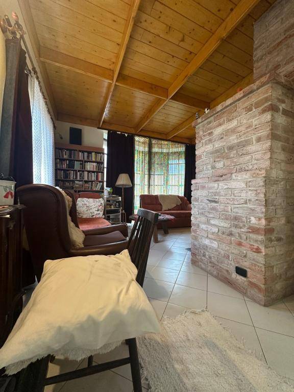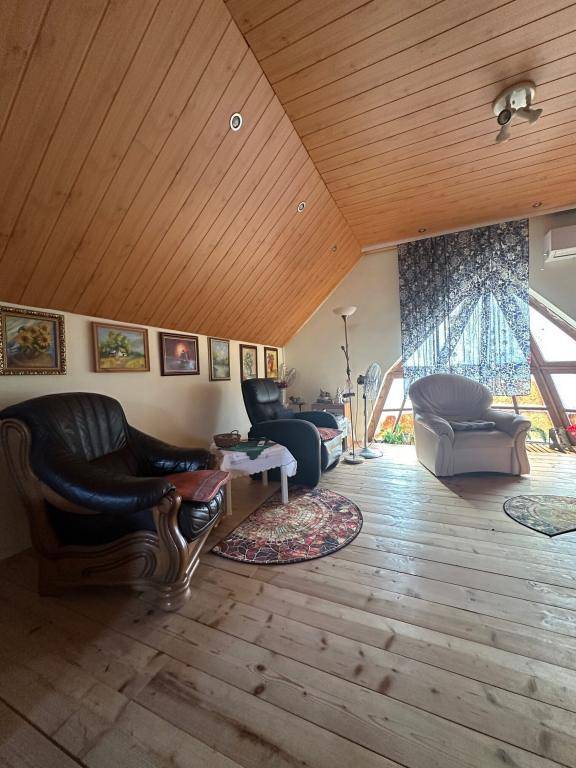 Nagyméretű nappali díszes faszerkezetű mennyezettel