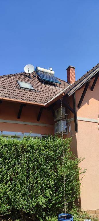 5 kW-os napelem rendszer a tetőn, amely teljesen kiváltja a vezetékes áramot, a többlet visszatáplálható a hálózatba