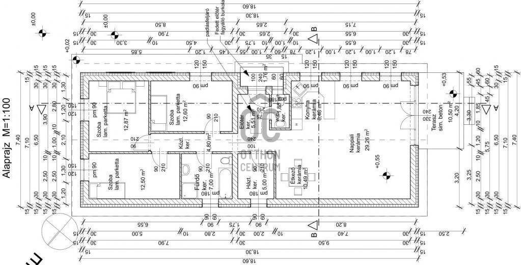 3 Szoba + amerikai konyhás nappali, fürdőszoba-wc, külön wc, háztartási helyiség