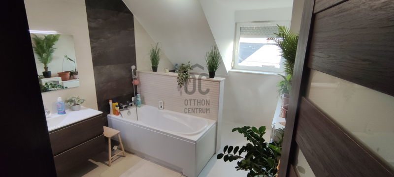 Eladó Debrecen egyik legfelkapottabb és legkellemesebb környékén, Csapókert szívében egy igazán különleges ingatlan, amely tökéletes választás lehet családok számára, vagy akár befektetési céllal is. Ez a családi ház 210 négyzetméteres alapterülettel rendelkezik, beton alapra 40 cm-es téglából épült. A ház egy 346 négyzetméteres telken helyezkedik el, amely lehetőséget ad a szabadidő kellemes eltöltésére, valamint a kertészkedés örömeire is. Az ingatlan belső elrendezése rendkívül praktikus és tágas, hiszen a négy hálószobája és két fürdőszobája révén ideális választás lehet nagyobb családok számára is. A világos nappali, amely a ház központi helyén található, tökéletes teret biztosít a közös családi programokhoz, míg a kandalló kellemes hangulatot teremt a hűvösebb estéken. A motoros redőnyök pedig nemcsak a biztonságot, hanem a kényelmet is szolgálják, hiszen könnyedén szabályozhatja a beáramló fényt. A házba kiváló minőségű, gépesített tölgyfa konyhabútor került beépítésre.