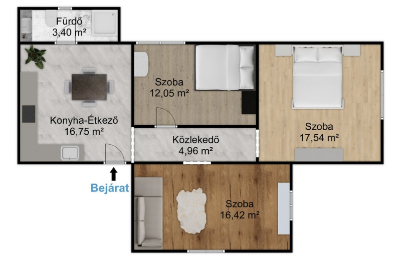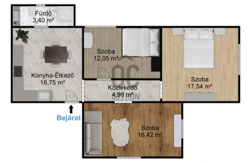 Az ingatlan állapota jó, a fűtést elektromos (infra) rendszer biztosítja. A lakásban 3 szoba és 1 fürdőszoba található. Elhelyezkedése kiváló, a környék csendes és biztonságos. A lakáshoz le van választva külön kertrész is.