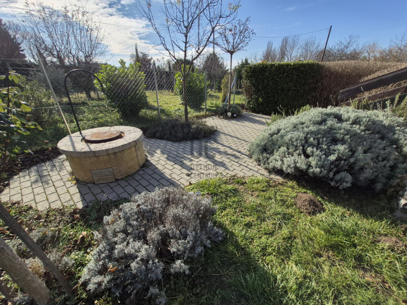 544 nm-es önálló telek tartozik hozzá, mely körbekerített, fiatal gyümölcsfák, füge, dísz-, és fűszernövények tarkítják.