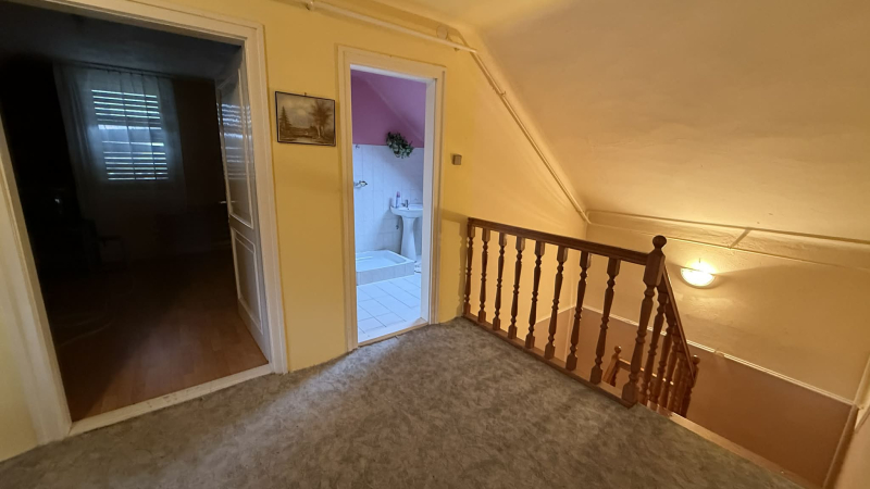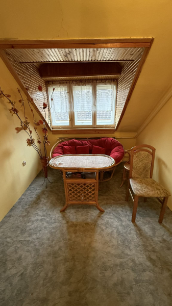 Az emeleten egy kisebb társalgó,illetve kettő nagy hálószoba,egyikhez erkély is tartozik és egy második fürdőszoba zuhanyzóval!