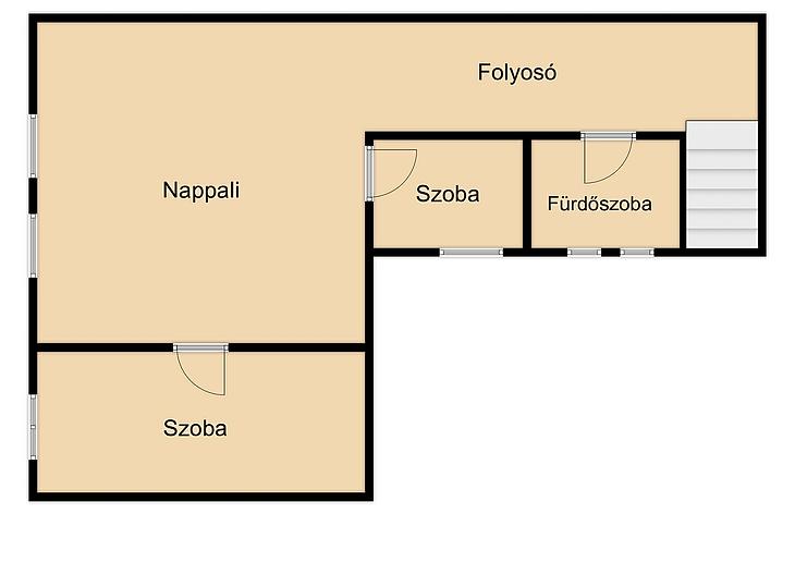 A 65 m²-es lakás belső kétszintes, társasházi ingatlan, külön bejárattal. Jelenlegi elosztása szerint a földszinten konyha és étkező, míg az emeleten 3 szoba és egy fürdőszoba kapott helyet. A vizes helyiségek járólappal burkoltak, két szobában laminált parketta, egy szobában pedig padlószőnyeg található. A lakás fa, thermo üvegezésű nyílászárókkal rendelkezik, amelyek jó hő- és hangszigetelést biztosítanak.