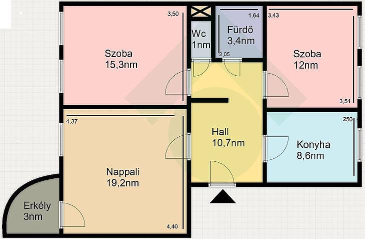 A lakáshoz tartozik egy SAJÁT 2nm-es, illetve ~15nm-es közös tároló is a földszinten.