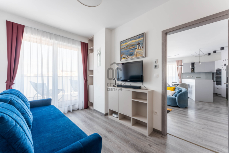 A 9. emeleti otthon teljesen bútorozott, tehermentes, mennyezeti hűtés–fűtés rendszerrel működik, és azonnal költözhető.