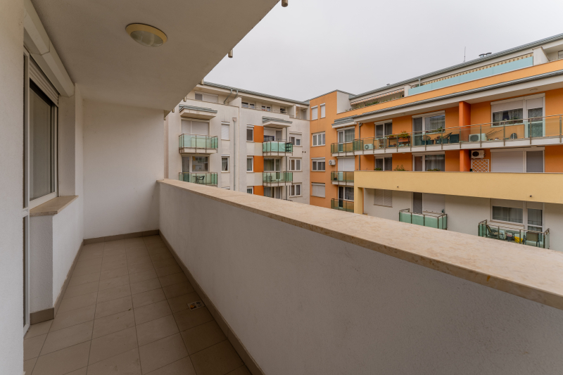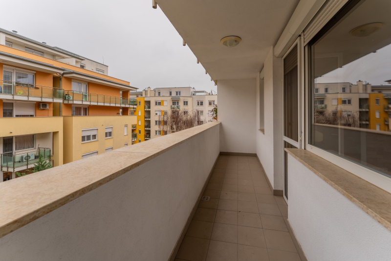 A közel 9 nm-es, tágas erkély a nappaliból és a hálószobából egyaránt elérhető, kényelmes teret biztosít akár több fő részére is.