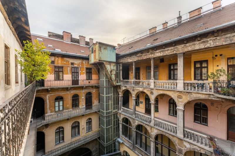 A lakás egy 1890-es évek elején épült, klasszikus polgári hangulatot árasztó, liftes ház legfelső emeletén található. Az épület rendezett, tiszta és pénzügyileg stabil; a társasház felelős gazdálkodásának köszönhetően folyamatosan karbantartott. A tető felújítása már megtörtént, a belső homlokzat pedig hamarosan megújul, pályázati forrásból történő festéssel.