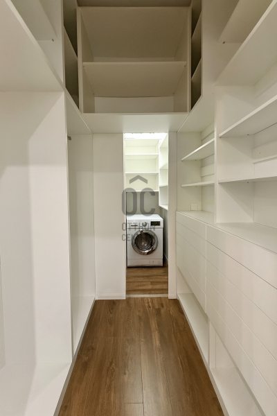 rengeteg polc, akasztórúd, felső szekrények és egy külön mosókonyharész került kialakításra.