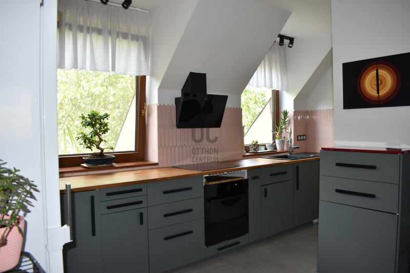 A lakás kivételes hangulatú: minden oldalról fák ölelik körbe, nyáron kevésbé melegszik át, télen pedig kifejezetten harmonikus hőérzetet biztosít.