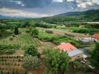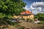 A kert minimális gondozást igényel, alacsony vízigényű növényekkel, öreg diófával.