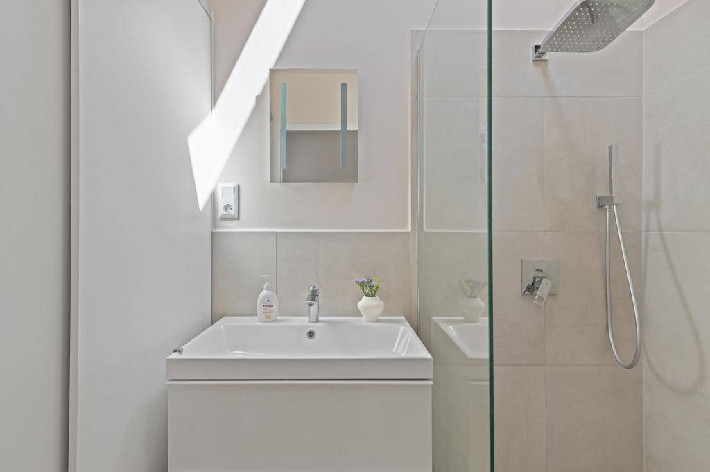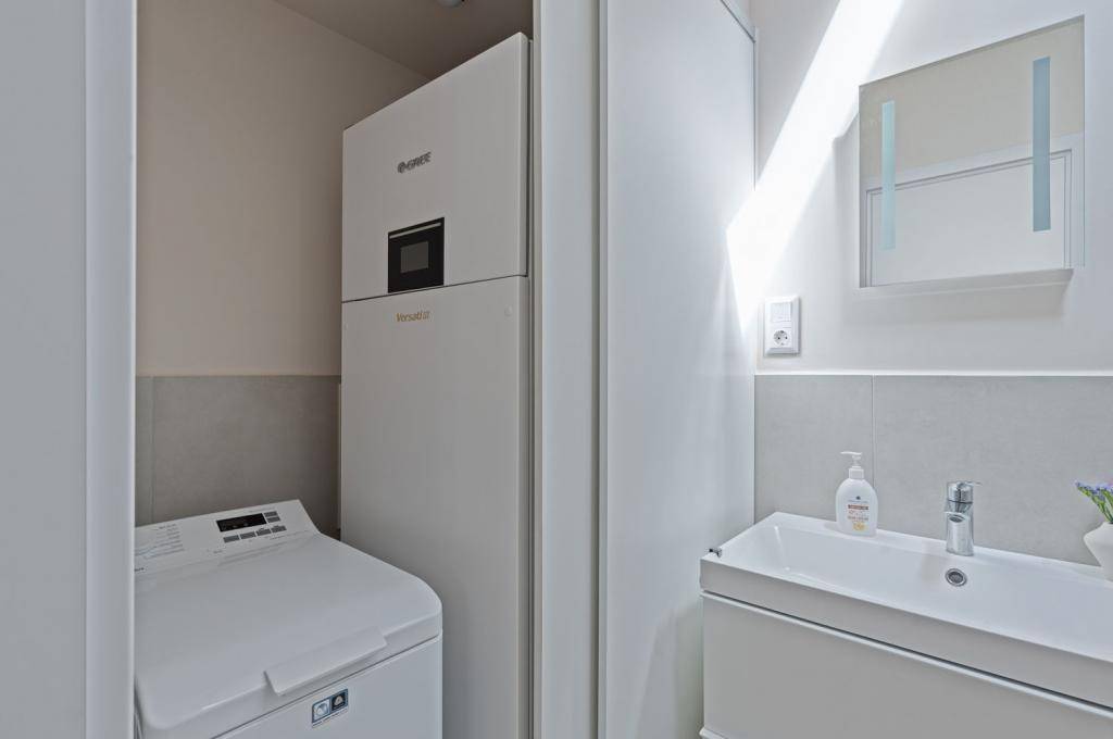 A konyha teljesen felszerelt, a fürdőszobában küszöb nélküli walk-in zuhany, Grohe szaniterek és motoros tetőablak található.