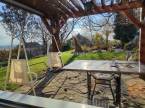 - két nagy méretű fa pergola a házhoz kapcsoltan
