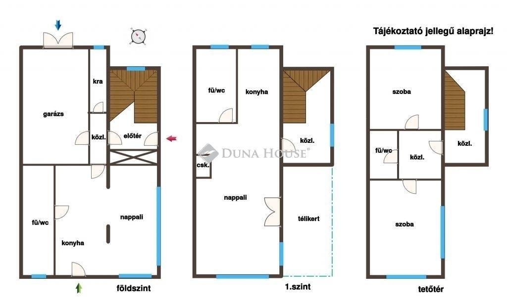 - a földszinten nappali (cserépkályhával), konyhával, fürdővel és egy csodás télikerttel