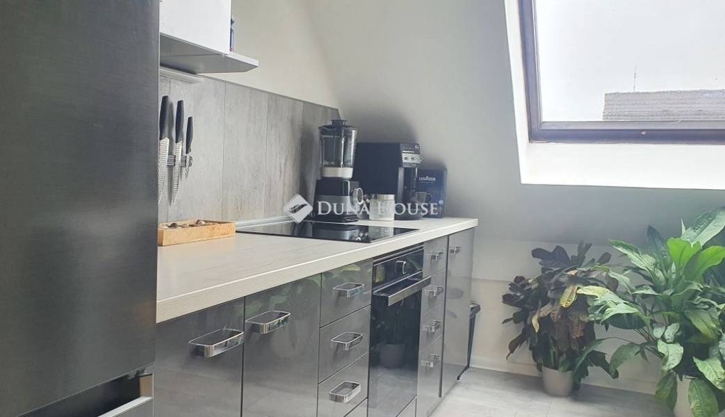 Szombathely, Olad napfényes tetőtéri otthon eladó!Csendes, zöldövezeti környezetben, az Oladi városrészen keres új gazdára ez a 4. emeleti, tetőtéri lakás, amelytől egyszerűen jó kedve lesz az embernek.Két kényelmes szoba + tágas, világos nappali várja új lakóit, a hároméves, modern konyhabútor pedig már most készen áll a hétvégi főzésekre és baráti összejövetelekre.A lakás távhős, így a fűtés megbízható és kényelmes. A lépcsőház rendezett, a szomszédok kedvesek igazi nyugodt kis közösség.A környékben minden ott van, amire szükség lehet: boltok, játszótér, benzinkút, és még a parkolás is stresszmentes, hiszen ingyenes az utcában.Ha valaki világos, barátságos, jól elhelyezkedő otthont keres, ez az ingatlan telitalálat.