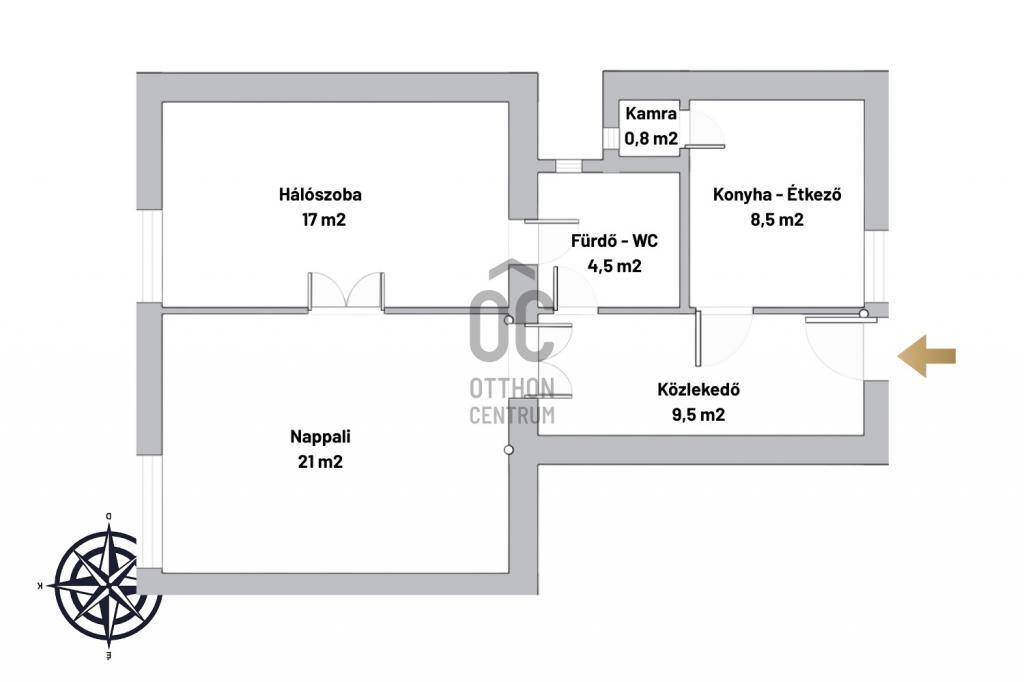 - Elosztása: 2 nagy szoba, ablakos konyha kamrával, ablakos fürdőszoba és WC, tágas előtér és közlekedő.