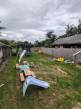 Az ingatlan udvara rendezett, nagyrészt körbekerített, részben burkolt, rajta melléképület, kerti csap, fúrt kút.