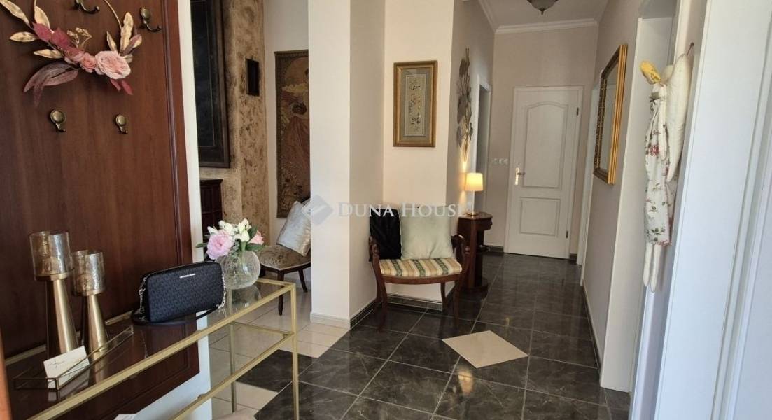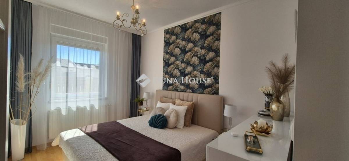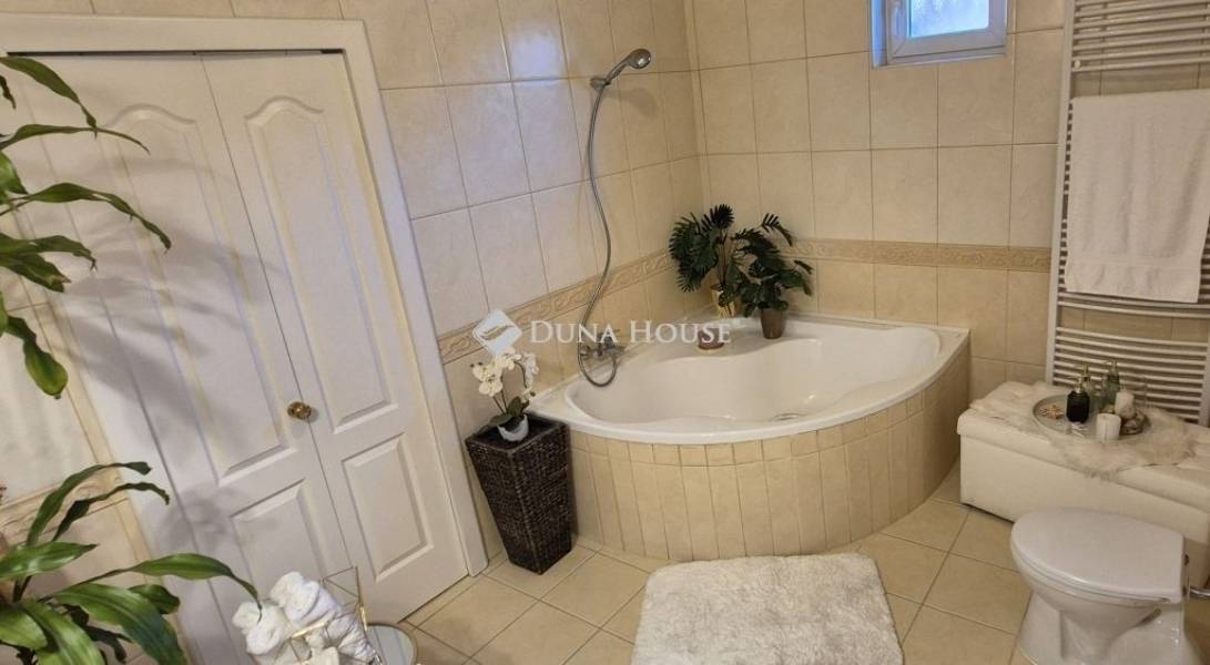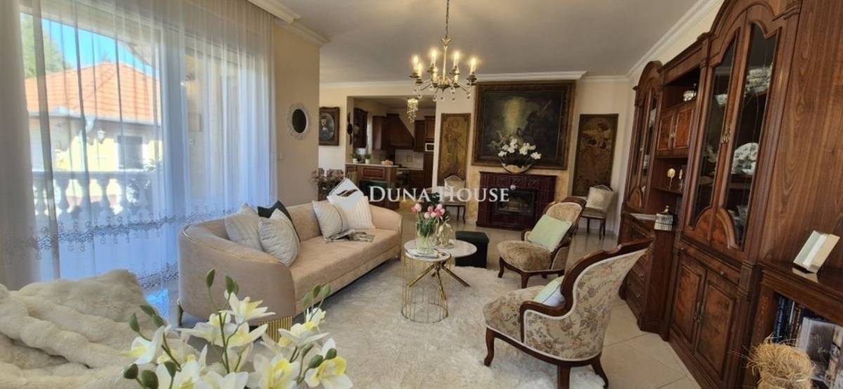 A 760 m2-es telken elhelyezkedő téglaépítésű ház tágas, amerikai konyhás nappalival és étkezővel, valamint 3 szobával és egy háztartási helyiséggel is rendelkezik. A gyönyörű, egyedi konyha modern, beépített Bosch gépekkel lett felszerelve. Az otthon melegét új kondenzációs gázkazán, valamint egy különleges kandalló biztosítja. A körbekerített, elektromos kapuval felszerelt, parkosított udvaron található a 30 m2-es többállásos garázs, valamint alatta a 30 m2-es száraz pince. Az öntözőrendszerrel rendelkező kert térkővel borított részén további autók beállására is van lehetőség. A kert nyújtotta örömöket tovább fokozza a hangulatos fedett terasz, grillezési lehetőséggel.