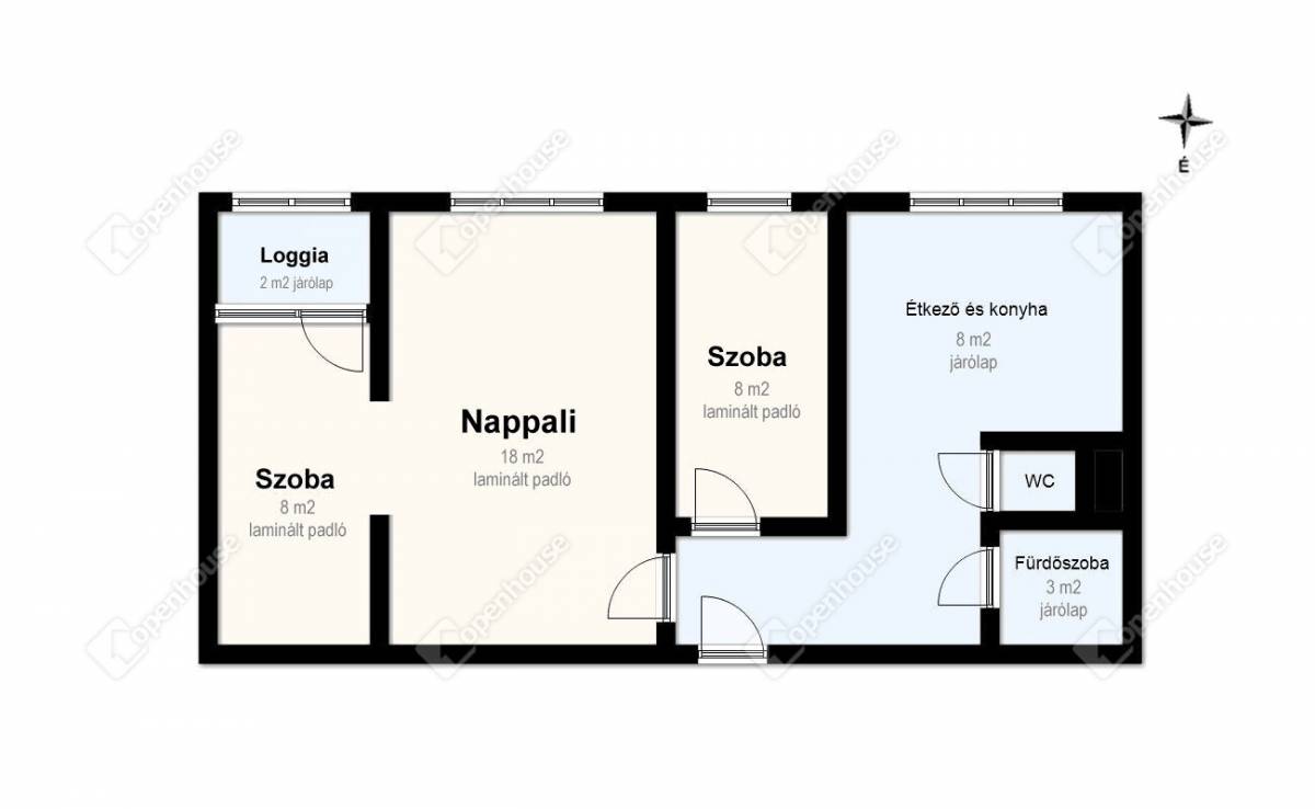 - 54 m2-es, 1+2 fél szobás kialakítás, kis loggia-val