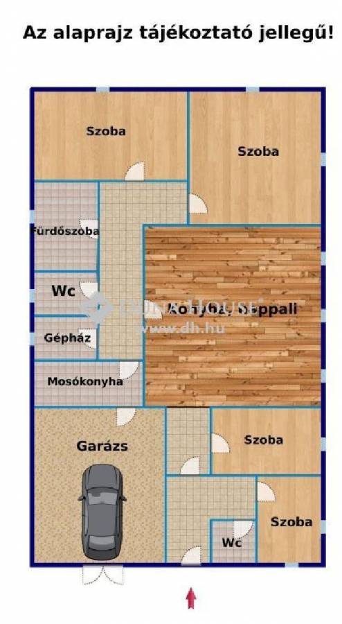 Tágas terek: 4 szoba, 1 fürdő, 2 WC, konyha, nappali