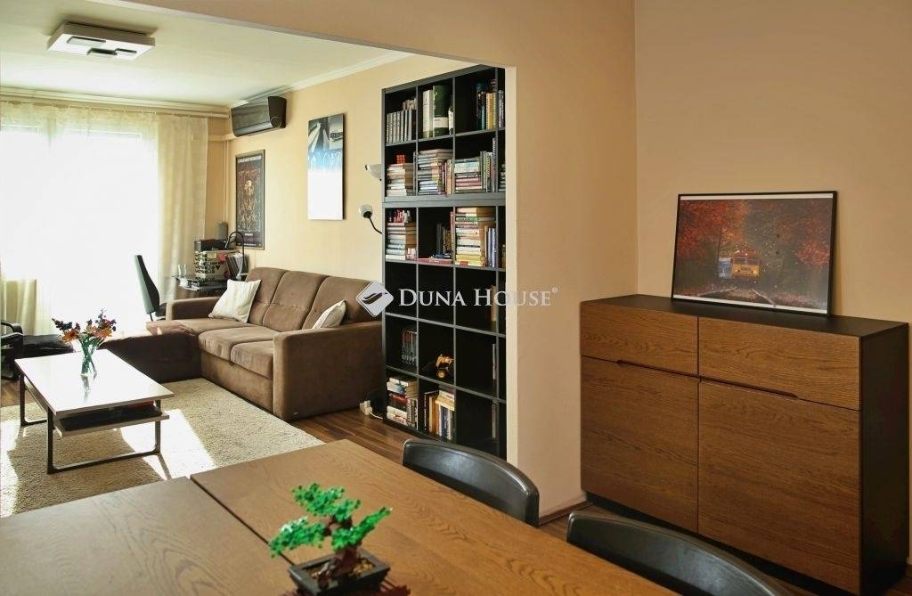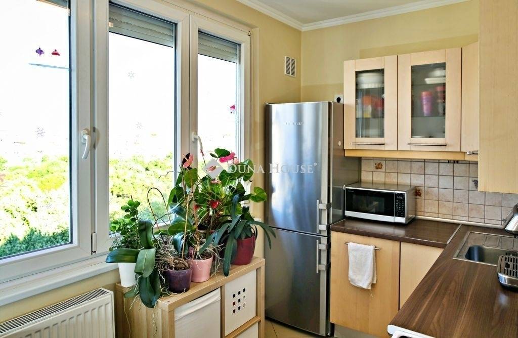 Panorámás, két erkélyes, felújított otthon egy hatalmas zöld liget felett... for English version please scroll down...Elhelyezkedés - Zöld, nyugodt környezet kiváló közlekedésselBudapest XV. kerületében, Újpalota szívében, a Páskomliget utcában kínálunk megvételre egy igényesen felújított, 70 m²-es, 3 szobás, étkezős lakást.A házat csendes, parkos környezet öleli körül, a kilátás pedig páratlan: a tágas erkélyről a zöld parkon át egészen a fóti templomig ellátni.A környék családbarát, biztonságos, minden megtalálható pár perc sétán belül vásárcsarnok, boltok, gyógyszertár, pékség, bölcsőde, óvoda, iskola, valamint a Pólus Center és az Ázsia Center is könnyen elérhető.Az otthon - Tágas terek, világos szobák, dupla erkélyA lakás a 9. emeleten helyezkedik el, kiváló elosztású, minden helyiség kényelmes méretű és természetes fénnyel teli.A nappali és a két hálószoba jól berendezhető, mindegyikben kényelmesen elfér egy nagyobb ágy és a további pakoláshoz szükséges bútorok.A két erkély külön irányba néz az egyik a parkra és a dombságra, a másik a Páskomliget utcára , így bármikor élvezhető a kilátás és a friss levegő.A nagy ablakos, külön konyha világos és jól szellőztethető, étkezős elrendezésének köszönhetően igazi családi tér.A lakáshoz tartozik egy zárható, ráccsal (a rácson lopásvédelem csökkentésére elhelyezett tűzálló borítással) leválasztott folyosórész, ami ideális bicikli, babakocsi vagy sportfelszerelés tárolására.Műszaki állapot - Gondosan karbantartott, modern megoldásokA lakás kitűnő állapotban van, az elmúlt évek során teljes felújításon esett át:- minden villanyvezeték cserélve lett (falba süllyesztve, vezetékcsatorna nélkül)- új műanyag redőnyös külső nyílászárók- beltéri ajtók szintén cserélve- két Fisher hűtő-fűtő klíma gondoskodik a nyári kényelemről- szobák laminált padlósak, a többi helyiség kerámiaburkolatos- festhető üvegszálas tapéta borítja a falakat, ami esztétikus és tartós megoldás- a radiátorokra egyedi mérőórák kerülnek felszerelésre a következő fűtési szezon előttAz ingatlan tehermentes, 1/1 tulajdonban van, így azonnal birtokba vehető.A társasház - Rendezett és folyamatosan karbantartottA ház akadálymentesített, a park felőli bejárat teljesen felújított.Nemrégiben megújult a lépcső és a liftvezérlés.A lakóközösség csendes, kulturált.A tömegközlekedés kiváló: a közelben 7, 7E, 8E, 108E, 133E, 46, 96, 196, 196A, 296, 296A buszok és a 69-es villamos megállói mind pár perc sétára találhatók, így a belváros 15-30 percen belül elérhető.Autóval gyorsan megközelíthető az M0-s körgyűrű és az M3-as autópálya is.A parkolás a ház környékén díjmentes.Ez a két erkélyes, panorámás lakás egyaránt ideális választás családoknak, első lakást kereső fiatal pároknak vagy befektetésnek is.Világos, jól szellőző, igényesen felújított otthon egy zöld, barátságos környéken ahol minden karnyújtásnyira van.Renovated home with two balconies and panoramic views over a breathtaking green parkLocation Green, peaceful area with excellent transport linksIn the heart of Újpalota, District XV. of Budapest, on Páskomliget Street, we offer for sale a tastefully renovated 70 m², 3-room apartment with a dining area.The building is surrounded by a quiet, park-like environment, and the view is truly unique: from the spacious balcony, you can see across the lush greenery all the way to the Fót church.The neighborhood is family-friendly and safe, with all amenities just a short walk away market hall, shops, pharmacy, bakery, nursery, kindergarten, and school. Pólus Center and Asia Center shopping malls are also easily accessible.The Home bright rooms, spacious layout, double balconyLocated on the 9th floor, the apartment has an excellent floor plan, with every room offering generous space and plenty of natural light.The living room and two bedrooms are easy to furnish each can comfortably accommodate a large bed and additional furniture.The two balconies face different directions: one overlooks the park and the nearby hills, the other faces Páskomliget Street, so you can enjoy the view and fresh air at any time.The large, windowed kitchen is bright and well-ventilated, and its dining layout makes it a true family space.The property also includes a separate, lockable corridor section with a grille (equipped with a fireproof cover for extra theft protection), ideal for storing bicycles, baby strollers, or sports equipment.Technical condition carefully maintained with modern featuresThe apartment is in excellent condition, having undergone a complete renovation in recent years:- All electrical wiring has been replaced (concealed in the wall, without surface cable channels)- New exterior doors and windows with plastic frames and roller shutters- All interior doors replaced- Two Fisher air conditioners provide cooling and heating comfort- Laminate flooring in the rooms; ceramic tiles in other areas- Walls covered with paintable fiberglass wallpaper aesthetic and durable- Individual heat meters will be installed on the radiators before the next heating seasonThe property is unencumbered and has a single owner (1/1 ownership), allowing immediate occupancy.The building Well-maintained and continuously cared forThe condominium is accessible for people with reduced mobility, and the entrance facing the park has been completely renovated.The staircase and elevator control system have been recently renewed.The residents are quiet and respectful.Public transport connections are excellent: buses 7, 7E, 8E, 108E, 133E, 46, 96, 196, 196A, 296, 296A and tram 69 all have stops within a few minutes walk, providing direct access to the city center within 1530 minutes.By car, the M0 ring road and M3 moto
