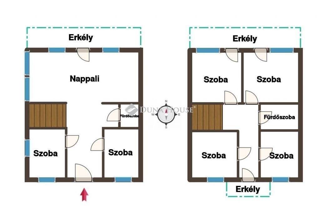 Emelet: 4 napfényes hálószoba, fürdőszoba káddal