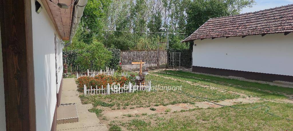 Bács-Kiskun Vármegye Kiskunfélegyháza Felsőgalambos városrészen családi ház eladó! Az ingatlan a Bugaci kereszteződés közelében helyezkedik el. A főépület hasznos alapterülete 57 m2, melyben két egész szoba, előszoba, konyha étkezővel, valamint fürdőszoba WC-vel került kialakításra. Az tulajdoni lapon Kivett / lakóház, udvar, gazdasági épület szerepel, az ingatlanhoz tartozó kivett terület 507 m2. Ezenkívül a tulajdoni lap alapján szántó 6761 m2, valamint fásított terület 797 m2, mindösszesen 8065 m2 terület tartozik az ingatlanhoz. A házat két kapubejárón keresztül is megközelíthetjük így a telek igény szerint szétválasztható és külön is értékesíthető. Az ingatlanban minden helyiség járólappal borított. Az otthon melegét 2 db. Midea típusú hűtő-fűtő klíma biztosítja, másik alternatívaként lehetőség van kályhás fűtésre is. Az ingatlanban a vizet 33 méter mélyről jövő fúrt kút biztosítja, melyből kettő hidroforon keresztül működik. A városi vízhálózat kiépítése folyamatban van a környéken. Az ingatlan ipari árammal rendelkezik, a gázcsonk a telken belül közel az épülethez található. A főépülethez közvetlenül, külön bejárattal kapcsolódik egy 24 m2-es melléképület is. A két épület egybe nyitható, ezzel a lakóingatlan alapterülete jelentősen megnövekedne. Az udvaron található egy 90 m2-es szendvicspanelből épült melléképület, mely legalább 4 méteres belmagassággal rendelkezik, lehetőség adva nagyobb gépek, traktorok tárolására. Valamint van még egy 30 m2-es melléképült, mely korábban hűtőhelyiségként funkcionált, zöldségek hűtését biztosította. Az ipari hűtőberendezés működőképes állapotban van. Az udvarban kialakításra került egy játszótér csúszdával, mászófallal, hintákkal, valamint egy kutyakenel. Az ingatlannal együtt két kisebb méretű fóliaváz is eladó. Az ingatlan aszfaltos út mellett található, óvoda, bolt, buszmegálló és autópálya feljáró a közelben. Az ingatlan Otthon Start hitelre alkalmas, kiváló lehetőség azok számára, akik csendes környezetben, mégis közel a városhoz szeretnének élni. Az ingatlan jogilag rendezett. Teljes körű és díjmentes Piaci Lakáshitel, Babaváró kölcsön és egyéb banki termékek ügyintézésével állunk rendelkezésére sorban állás nélkül! Az adásvételi szerződéshez megbízható ügyvédi hátteret biztosítunk. Megtekintésért kérem hívjon bizalommal! Eladó ingatlana van? Szívesen segítek az értékesítésben!