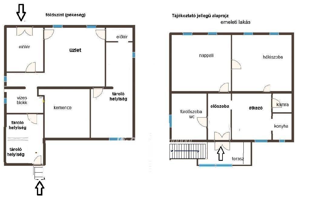 A szintén 87 m2-es, földszint eredetileg pékségként üzemelt, felújításra, átalakításra vár, de a vezeték cseréje itt is megtörtént.