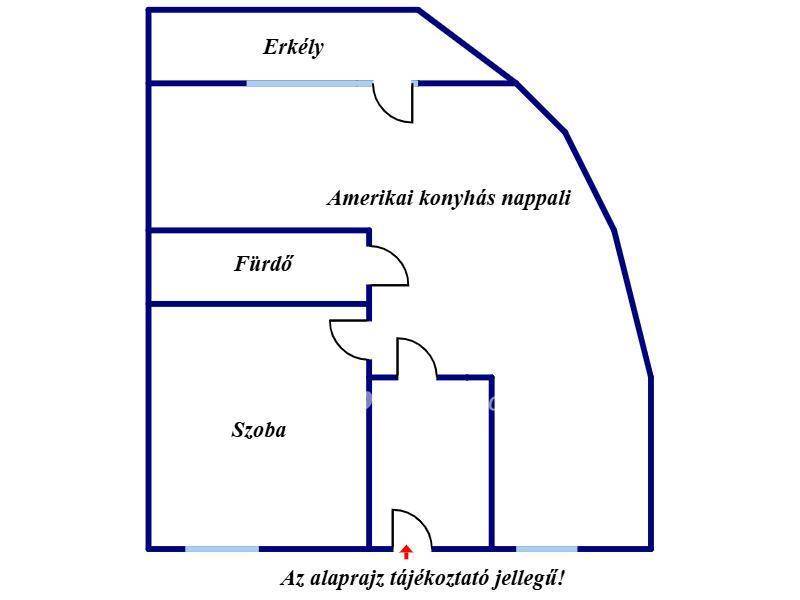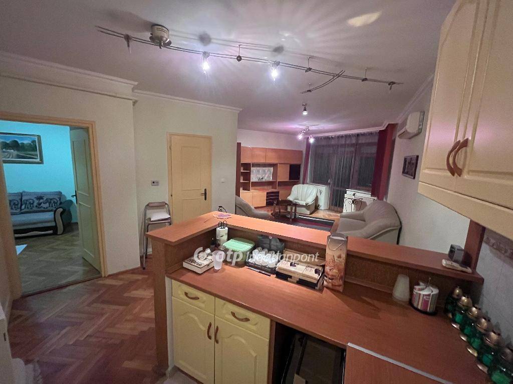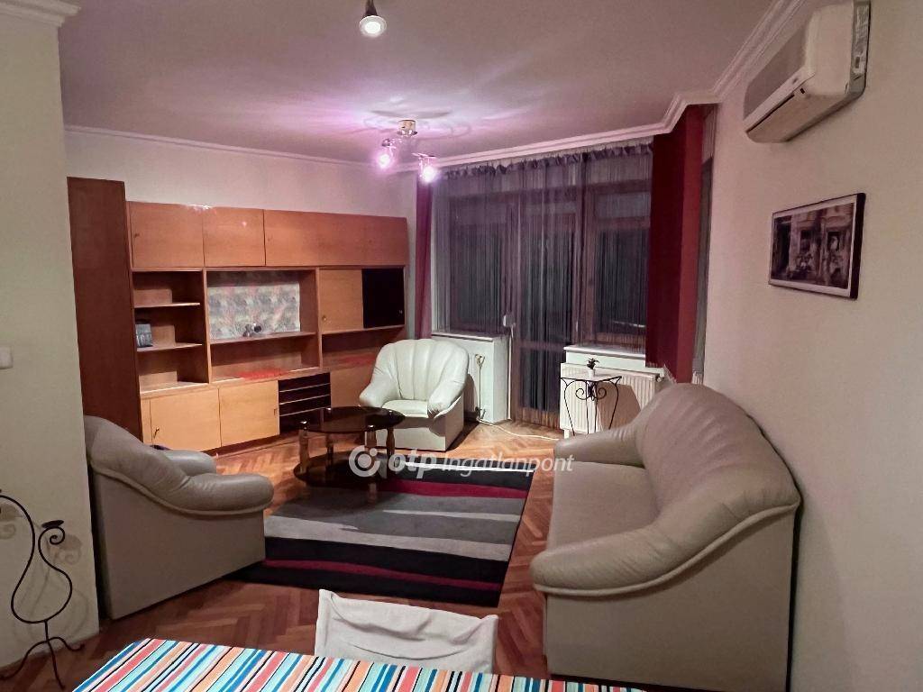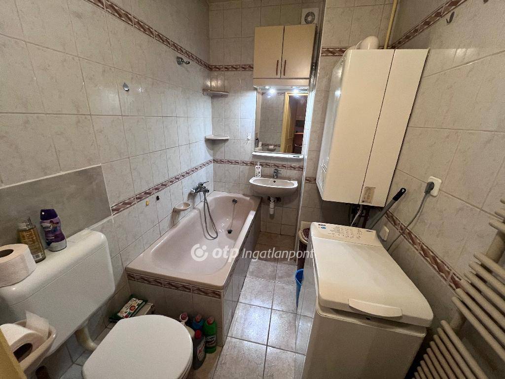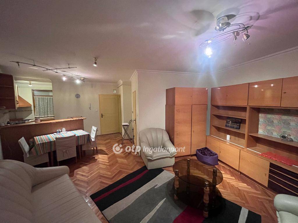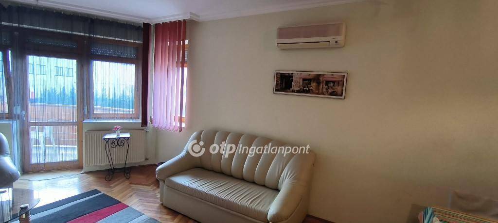 A lakás elrendezése praktikus: tágas nappali?étkező?konyha, külön hálószoba beépített gardróbbal, kádas fürdőszoba WC-vel, előtér beépített szekrénnyel, valamint egy íves kialakítású erkély. A fűtést kombi gázkazán biztosítja radiátorokon keresztül, az egész éves komfortért hűtő-fűtő klíma áll rendelkezésre. A redőnyözött, fa nyílászárók újszerű állapotúak.