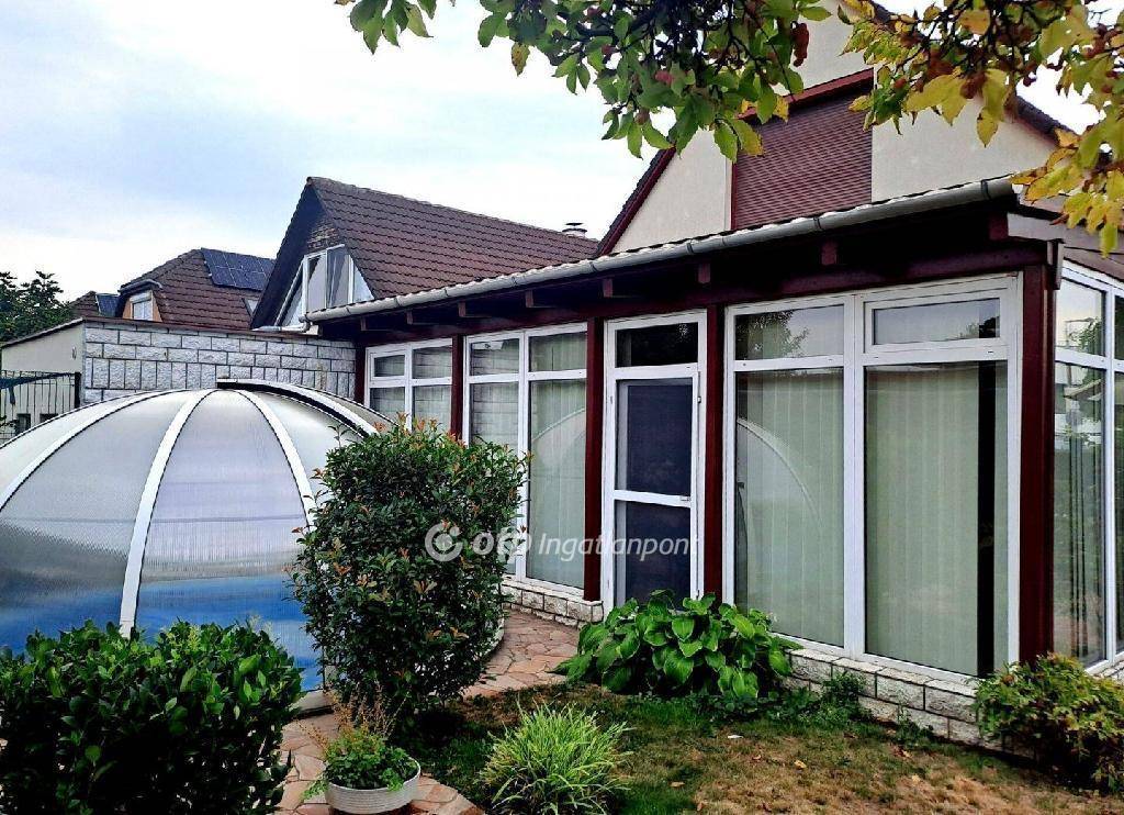 Fejér vármegye Dunaújváros kertvárosi hangulatú elit környezetében eladó egy 1984- ben épült, impozáns, napelemekkel felszerelt, 140 nm területű luxus kategóriába tartozó kétszintes, 2 szobás,2 fürdőszobás, gáz cirkófűtéses légkondicionálókkal felszerelt, nagy nappalis, télikertes családi ház, körbe kerített, gyönyörűen parkosított, és részben térkövezett, 353 nm területű saroktelken. A tágas világos szobák és a nappali parketta burkolatúak, a többi helyiség igényes járólap burkolatú. Az alsó szinten található egy nagy nappali komfortos télikerttel, tágas előszoba, melyből nyílik egy külön álló WC és egy tusolóval ellátott nagy fürdőszoba, valamint az étkezővel egybekötött konyha. Az emeleti szinten található két külön bejáratú nagyobb méretű szoba, egy pezsgőfürdős káddal ellátott fürdőszoba, külön bejáratú WC, valamint egy kisebb gardrób szoba. Az ablakok rovarhálóval, redőnyökkel felszereltek. A 8 cm vastagságú homlokzati szigeteléssel ellátott ház fűtésről Bosch gáz kombi falikazán alapú központi fűtés, és egy elektromos kandalló gondoskodik. A használati meleg vizet is a kazán biztosítja. A házban az optimális, kellemes hőérzetet télen, nyáron 3 db fűtő-hűtő légkondicionáló is garantálja. Igény szerint a bútorzat jelentős része is a vételár részét képezi felár nélkül. Az ingatlan sarok telken helyezkedik el, melynek egy része egy szépen parkosított, belső udvar, Itt kapott helyet egy autó tárolására alkalmas garázs, melyhez kapcsolódik egy külső tároló. A kert elszeparált részén található egy 8 fő befogadására alkalmas egyedi kivitelezésű, uszoda technikával ellátott fedett Jakuzzi medence, amely éjszakai áramra és napkollektorra lett rákötve. Az ingatlan az elhelyezkedéséből adódóan is remek választás, mivel nagyáruházak közelségében található, és az autóbusz megálló is 50 méternyire van. Amennyiben egy igazán különleges környezetben szeretne otthonra lelni családjával egy luxus ingatlanban, vagy ilyen ingatlant keres ügyvédi irodának, könyvelő irodának, orvosi, vagy fogorvosi rendelőnek, akkor ez az ékszerdoboz a legjobb választása lehet. A vásárlást igény szerint ingyenes finanszírozási tanácsadással tudjuk segíteni.