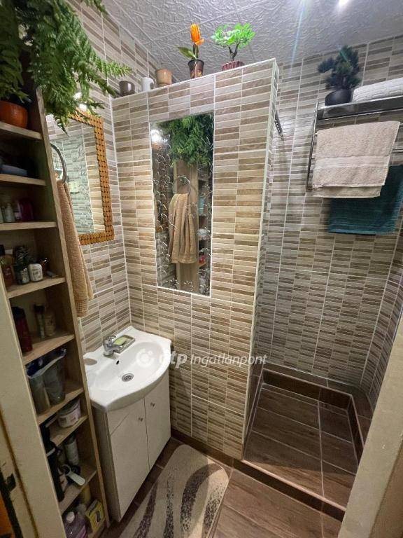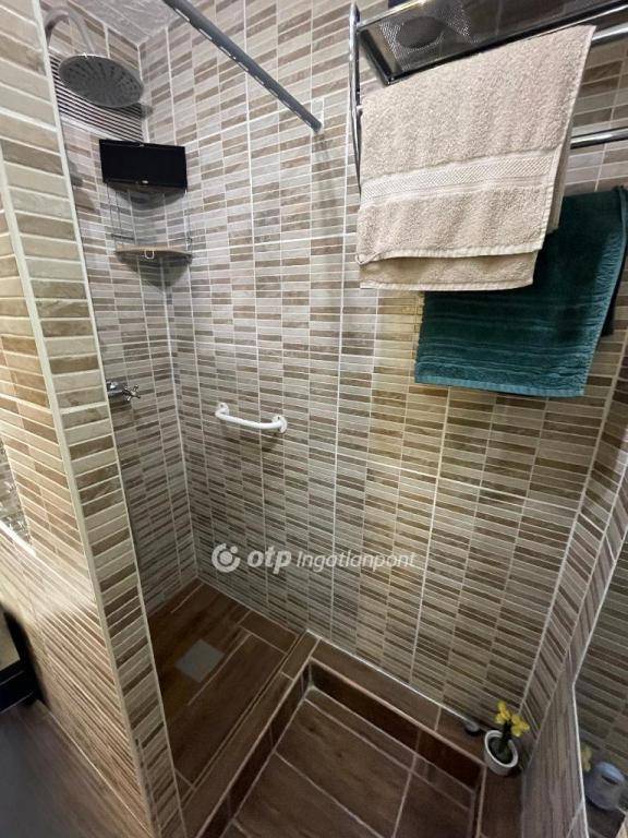 Felújított, beépített zuhanyzós fürdőszoba és külön helyiségben lévő WC.