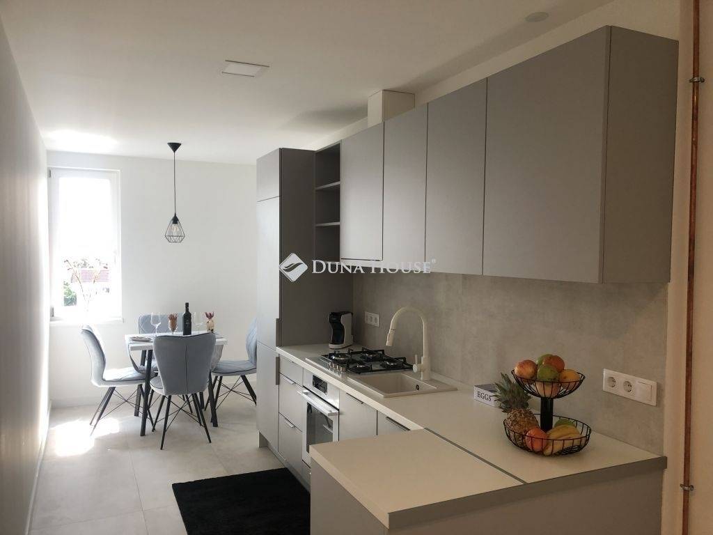 Eladó Pécs belvárosában, a PTE mellett egy teljes körűen, extra igényesen felújított 2 szobás lakás!Az ingatlan belső elrendezése:2 külön bejáratú szoba, tágas konyha-étkező, fürdőszoba wc-vel, közlekedő és háztartási helység.A lakás a tavalyi évben került felújításra, kizárólag minőségi anyagokkal, igényes kivitelezéssel, a lakást még nem lakták!A felújítás során cserélve lett a teljes villamos és vízvezeték hálózat, fűtését és melegvíz ellátását nagy teljesítményű, vadonat új wifi-s kombi gázkazán biztosítja. Ablakok, bejárati ajtó és belső ajtók szintén cserélve, egyedileg gyártott konyhabútor került beépítésre. Új fürdőszoba zuhanykabinnal, új padló és falburkolatok, fényzáró függönyök.A lakáshoz tartozik egy udvari tároló is.Buszvégállomás és az Árkád bevásárló központ 3 perces sétára, jogi egyetem a szomszédban, a történelmi belváros szintén néhány perc alatt elérhető.Bővebb információkért hívjon.