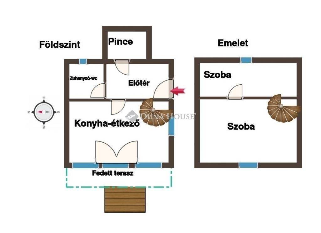Gyódi Szőlőhegyen eladó egy 50 m²-es, belső kétszintes téglaépítésű kis ház stabil szerkezettel. A földszinten egy nagy konyhaétkező, zuhanyzó és WC, valamint egy előtér kapott helyet, amelyből a pince is megközelíthető. Az emeleten két szoba található.Az ingatlanban villany van, a vízellátás korábban fúrt kútról történt. A kút évek óta nincs használatban, működőképessége nem garantált. Gáz és csatorna nincs a telken, azonban az utcában több állandó lakos él, akik szintén kútvízzel oldják meg a vízellátást, így a rezsi alacsonyan tartható.A terület két, egymás mellett fekvő, külön helyrajzi számú telekből áll, 1 938 m², művelési ágból kivonásra került. Nagy része sík, kb. egyharmada enyhén dombos, gyümölcsfákkal beültetett. A terület és a ház is gondozást, illetve esztétikai felújítást igényel, ugyanakkor a szerkezet jó állapotú, így viszonylag könnyen lakhatóvá tehető.Az ingatlan tehermentes, akár 12 napon belül birtokba vehető. A környék csendes, rendezett, a szomszédság kifejezetten barátságos. Buszmegálló a közelben található, így a közlekedés is kedvező.További kérdéseivel és személyes megtekintésért várom hívását!