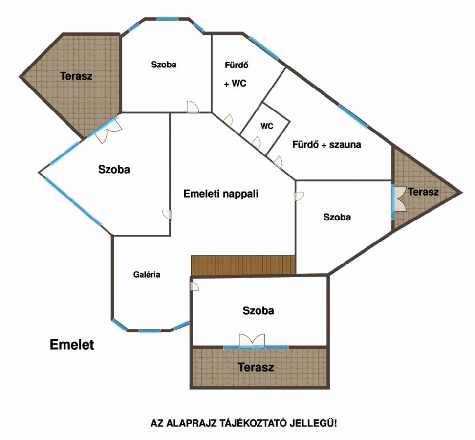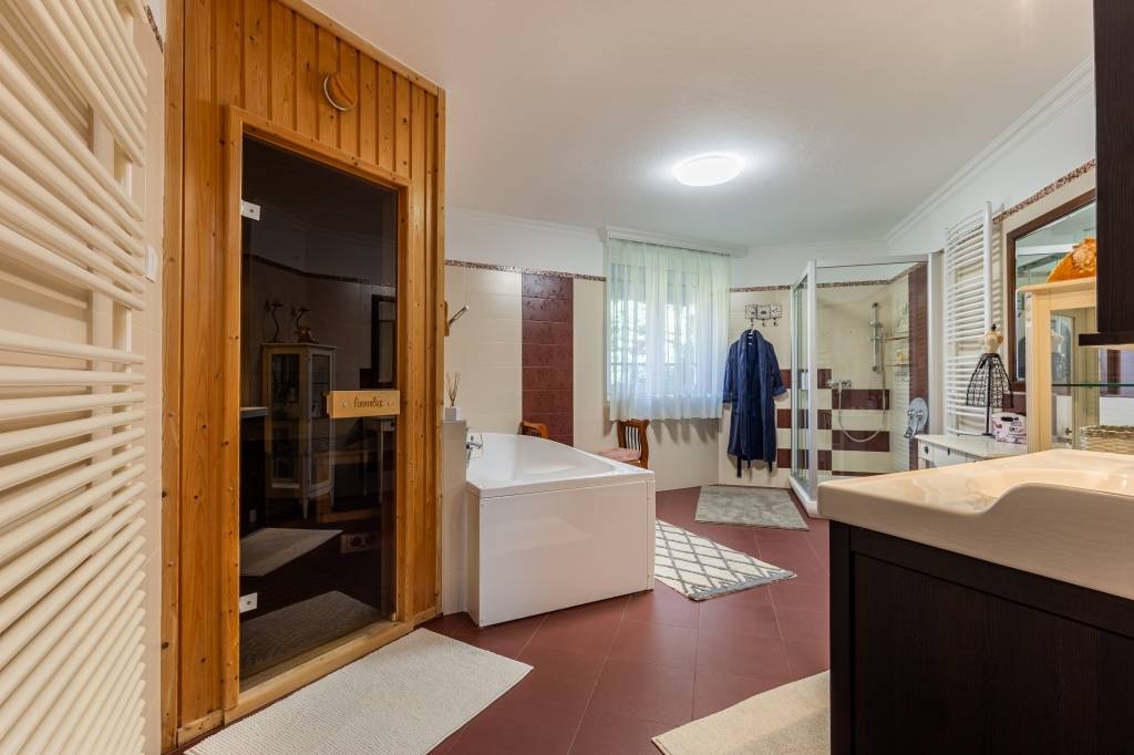 Az ingatlant a nagy terek jellemzik, az emeleten a fürdőszobában szauna is található.