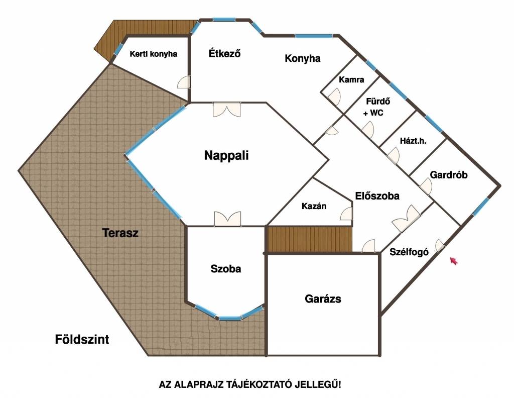 Lakótér: 443 m² + kb. 90 m² beépített, szigetelt tetőtér (konyhával, külön lakótér kialakítható)