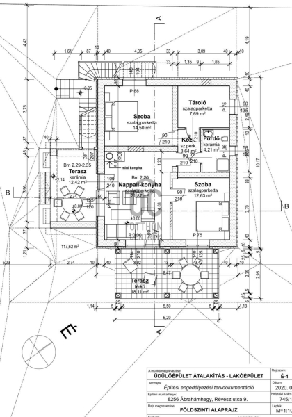 A földszint elosztása - nagyméretű , tágas amerikai konyha- nappali , 3 hálószoba, fürdőszoba , fedett ,és nyitott teraszkapcsolat .