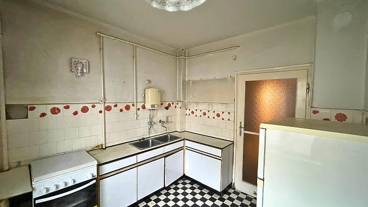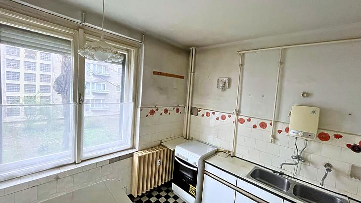A 8 nm-es, ablakos konyhát, kamrát és a külön wc -t az előszobából érhetjük el, míg a káddal szerelt fürdőszobát egy közlekedőből közelíthetjük meg.