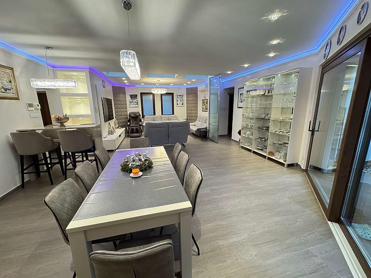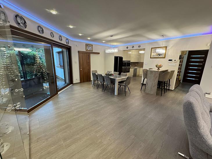 -A nappali nagy tolóajtóval rendelkezik, közvetlen kertkapcsolattal