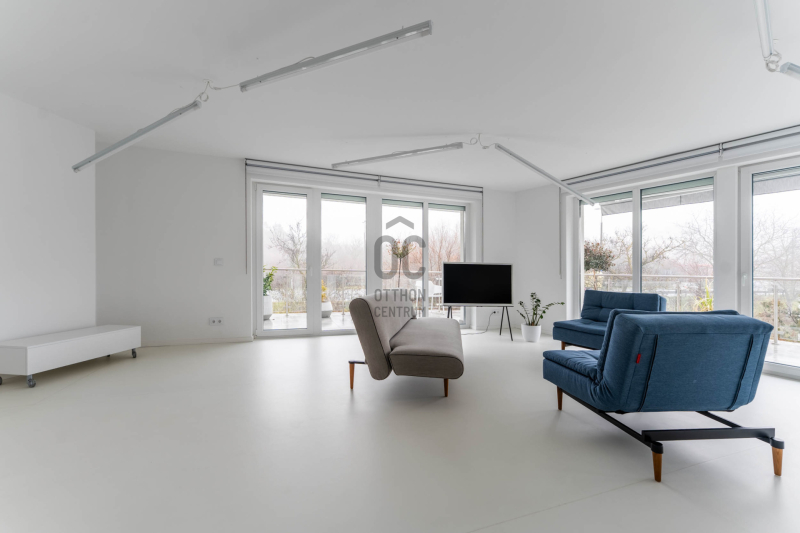 A lakás jelenleg nagy, egybefüggő terekkel rendelkezik, azonban bontás nélkül könnyedén kialakítható több szoba is, így igény szerint alakítható — akár iroda, akár családi otthon céljára.
