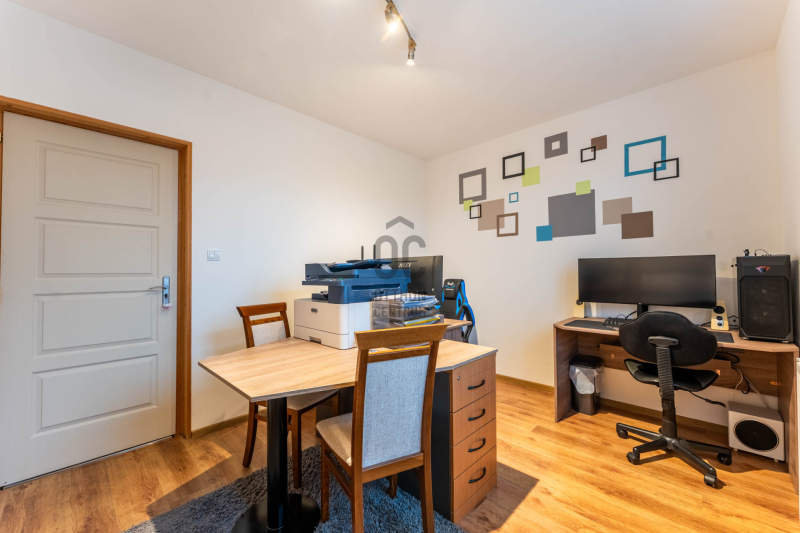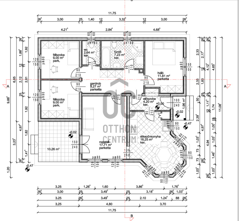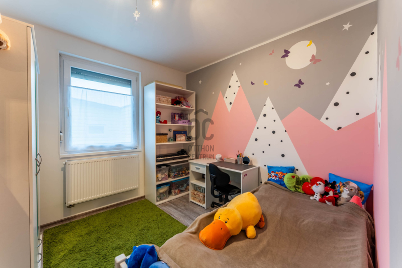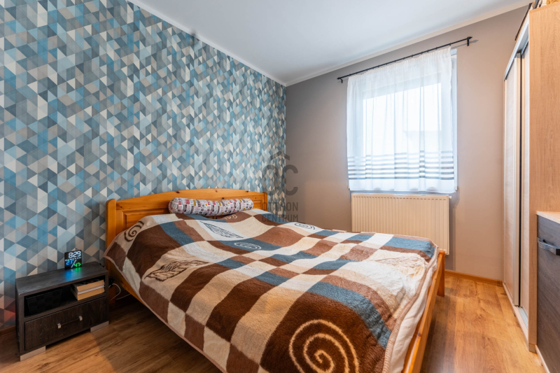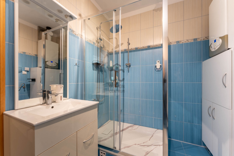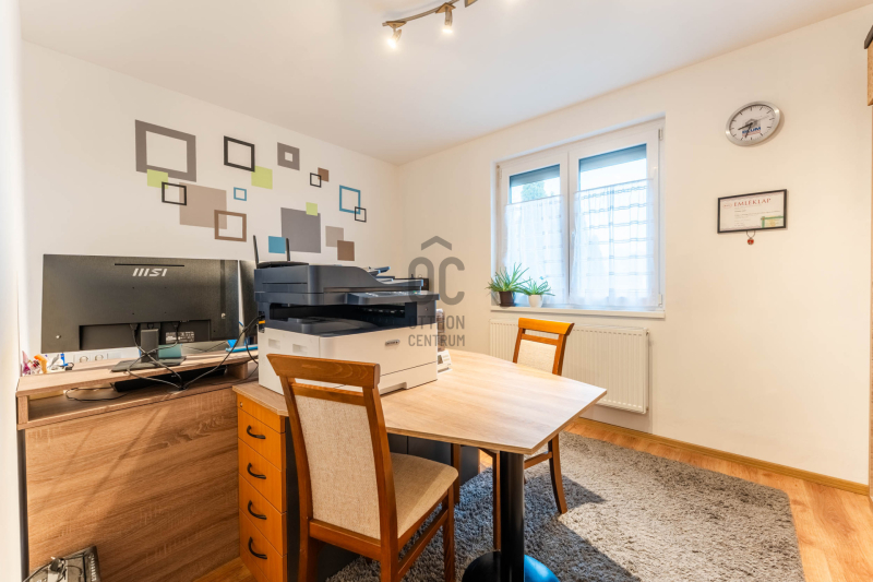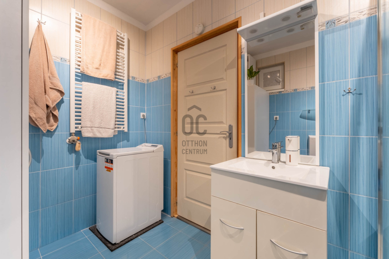 -helyiségek: 3 hálószoba, nappali, tágas konyha–étkező, WC-kézmosó, fürdőszoba,
