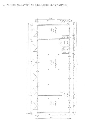 - Autóbusz javító műhely, szerelőcsarnok 963 négyzetméter