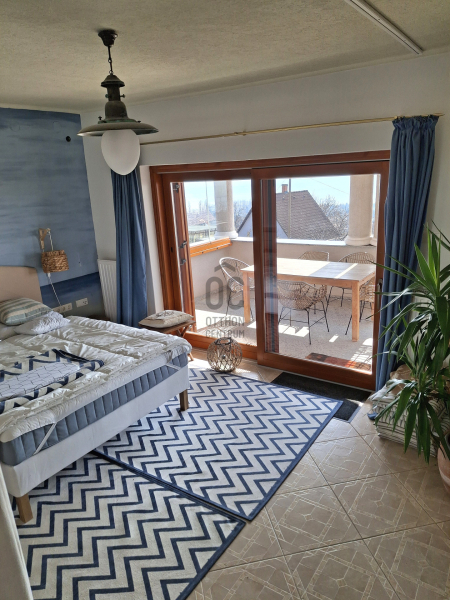 A felső szinten a napfényes nappalihoz szintén kapcsolódik egy terasz+ külön hálószoba és egy zuhanyzós fürdőszoba.