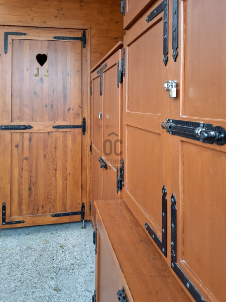 A szaletli alatt a kerti eszközök tárolására kialakított helyiség épült. Előtte pedig a relaxálást biztosító dézsafürdő és szauna kapott helyet.