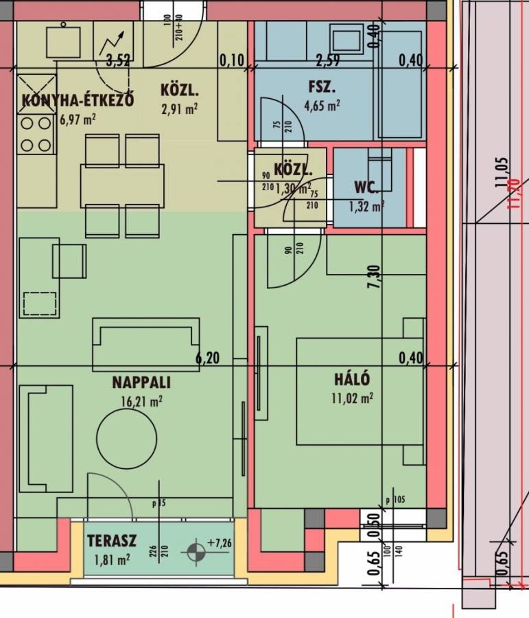Nettó alapterület: 43,26 m²