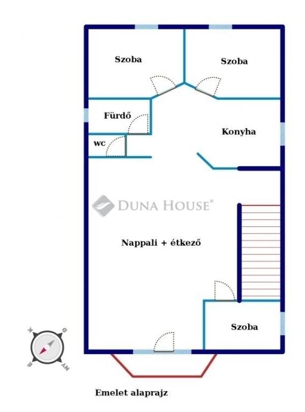Az emeleti lakás 2010-ben épült és lett kialakítva. Itt az előszobából egy lépcsőn jutunk fel az emeletre ahol egy tágas nappali + étkező és egy kényelmes konyha fogad. Innen nyilik még 3 szoba és egy fürdőszoba, wc.