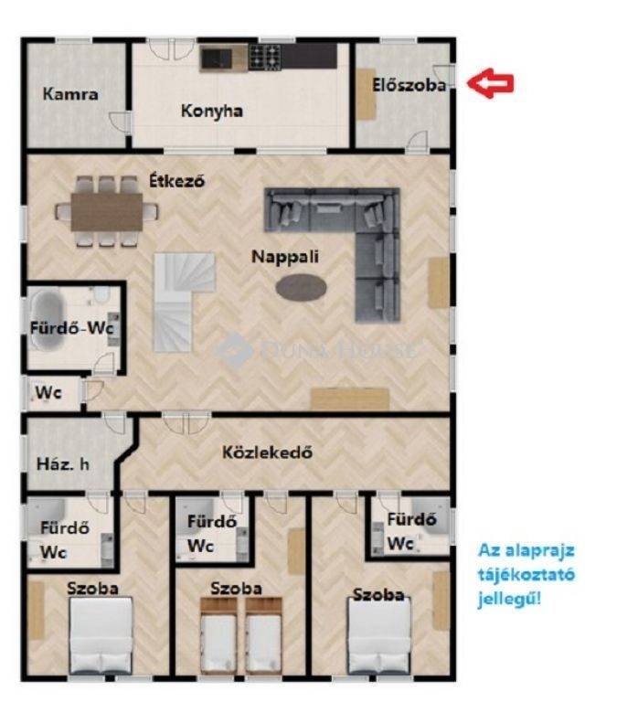 Fűtés: teljes padlófűtés + elektromos rendszer