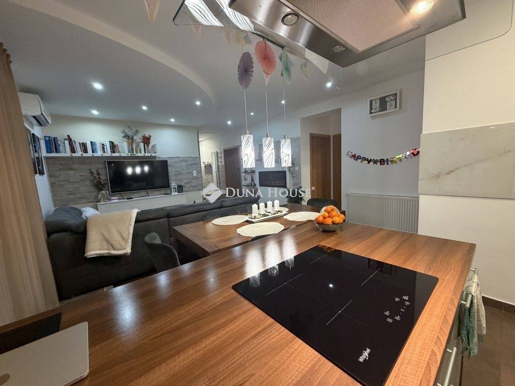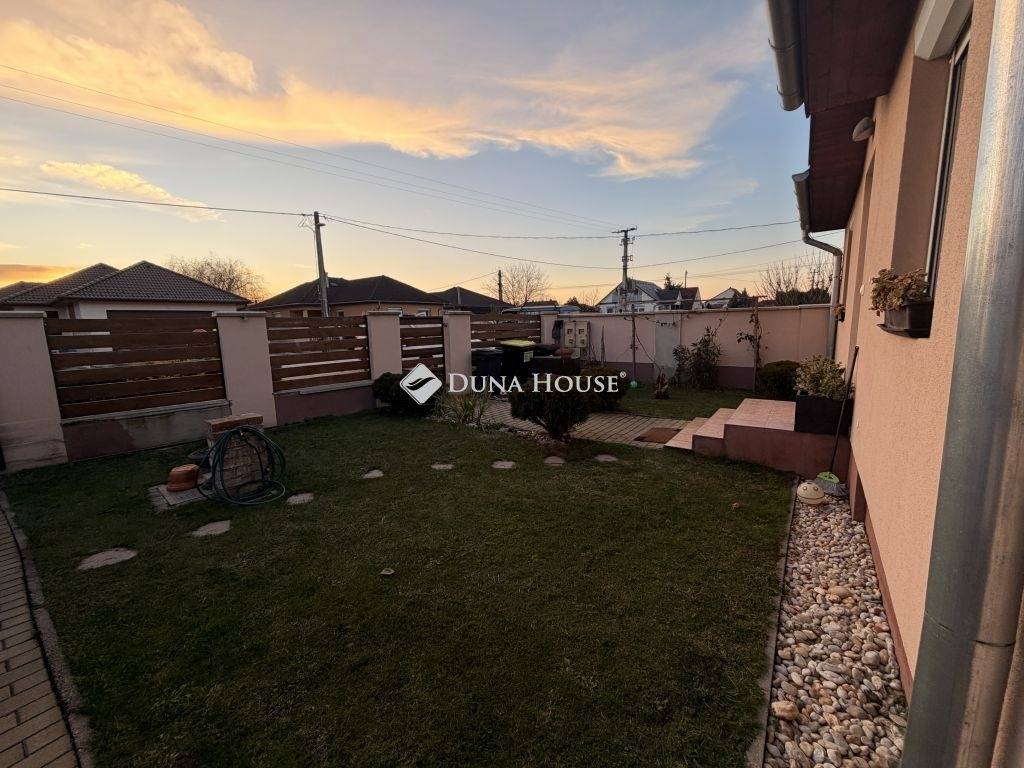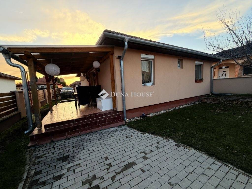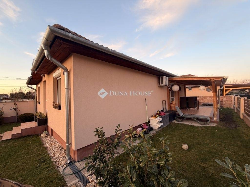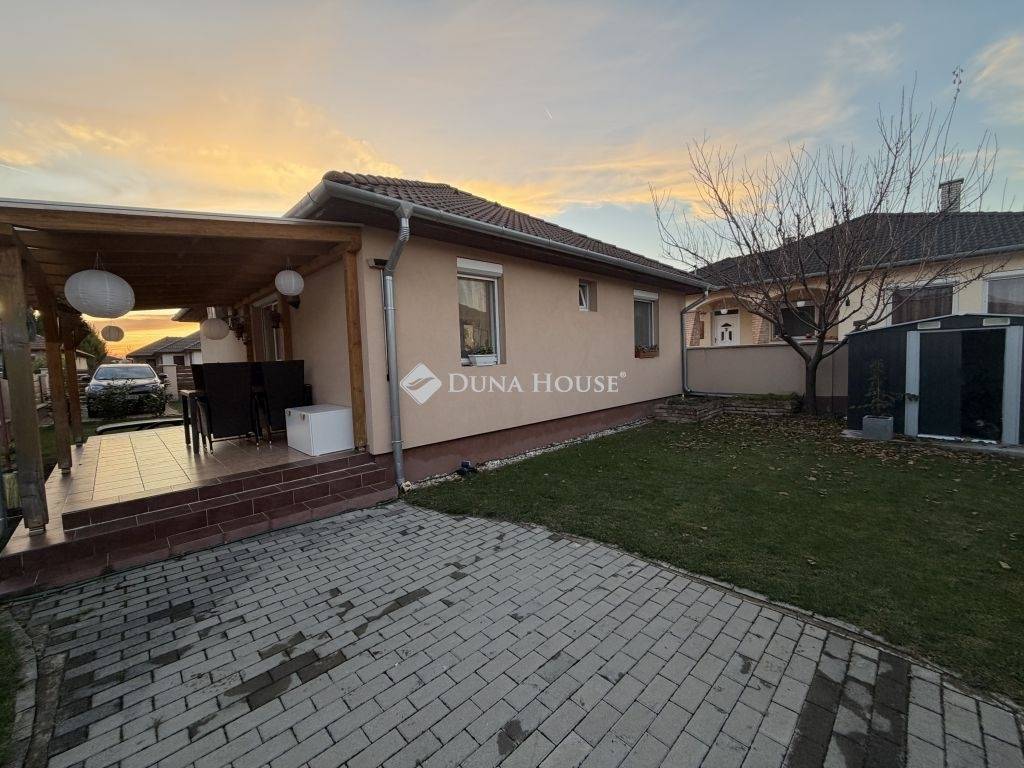 Eladásra kínálok Győrzámoly csendes, rendezett részén egy kiváló állapotú, gondosan karbantartott családi házat, amely kiváló műszaki háttérrel és kényelmes elrendezéssel várja új tulajdonosát!A ház 2014-ben 30 cm-es Porotherm téglából épült, 15 cm hőszigeteléssel, fafödémmel és betoncseréppel fedett tetővel. A padlástérben 30 cm szigetelés található. A fűtést és a meleg vizet Saunier Duval kondenzációs gázkazán szolgáltatja radiátoros rendszerrel, melyet nagy teljesítményű klíma egészít ki hűtésre és rásegítő fűtésre. A nappaliban elhelyezett elektromos kandalló tovább fokozza az otthon melegét és hangulatát.Az ablakokon redőny és szúnyogháló található, a teraszajtón külön nyitható szúnyogháló ajtóval. A kert locsolása kerti csapról történik.A hátsó kert igazán barátságos: kialakított grillező sarokkal, bográcsozási lehetőséggel, magaságyással és egy árnyékot adó sárgabarackfával. A kerti eszközök tárolására egy 12 m²-es kerti tároló szolgál. A kert igényesen parkosított, sok örökzölddel, virággal és gyümölcsfával.Helyiségei:előszobanappaliétkezőkonyha3 hálószobafürdőszobaWCspájzközlekedőfedett teraszAz ingatlan nem régiben teljeskörű festésen esett át, csodálatos, szívmelengető színeket kapott, így már a házba belépve is nagyon otthonos, kellemes érzést nyújt. A környék biztonságos és családbarát, Győr autóval néhány perc alatt elérhető, a közelben pedig óvoda, iskola, bolt, játszótér és sportpálya is található.Ez az otthon tökéletes választás, ha már csak bepakolni szeretne Szigetköz szívében, megfizethető áron.Családoknak, pároknak és befektetőknek egyaránt ideális lehetőség.Ilyen gondosan karbantartott, igényes ingatlan nem kerül minden nap a piacra, ha megtetszett, ne várjon tovább, nézzük meg még ma!Banksemleges hitelügyintézéssel állunk rendelkezésére, a hét minden napján!